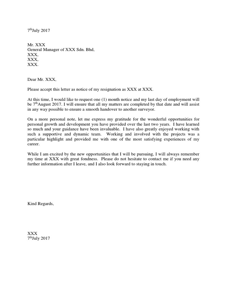 Contoh Surat Perletakan Jawatan
